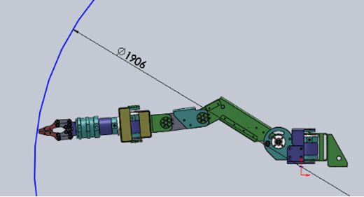 握手钳底座旋转中心至指尖最大距离平直伸长距离953mm。