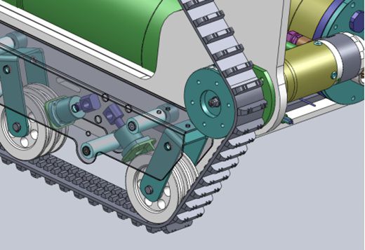 履带是水下机器人的第二影响配置。悬架结构和专用防水驱动桥占重较大。