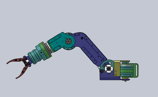 5功能是指手臂的4个回旋自由度和1个钳口夹紧。其中手腕可以实现360度连续旋转,握手钳和平口钳可以更换。
