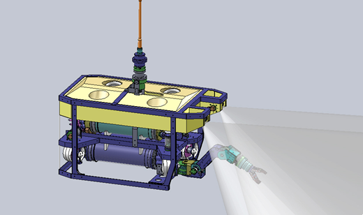 T20单机械手履带水下机器人是针对国内水下环境开发的一种中端中型无人有缆遥控潜水器,是体积较小的经济中型ROV,拥有单5功能液压机械手、2条履带性能超群的水下爬行履带、8个推进器,采用1000V直流远距离输电,总功率升级至12KW。采用4路旋转摄像头+照明灯配置,可方便水下多角度视场观察。