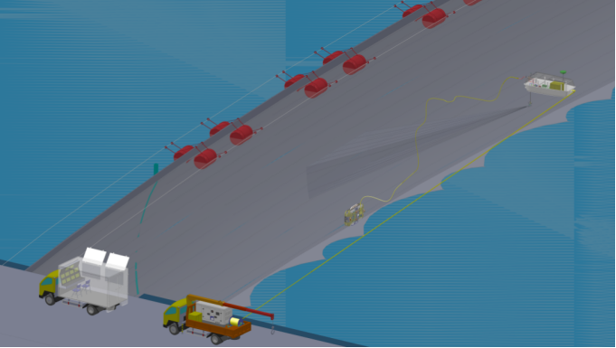 X21岸基版洗网机器人采用纤夫拉船技术,工作船在岸索纤绳的引导下,准确在水面上定位,协助水下清洗,清洗水面跨度可达300米。双车配置,运营成本低,可以迅速通过高速公路运输进行跨区作业,响应及时。
